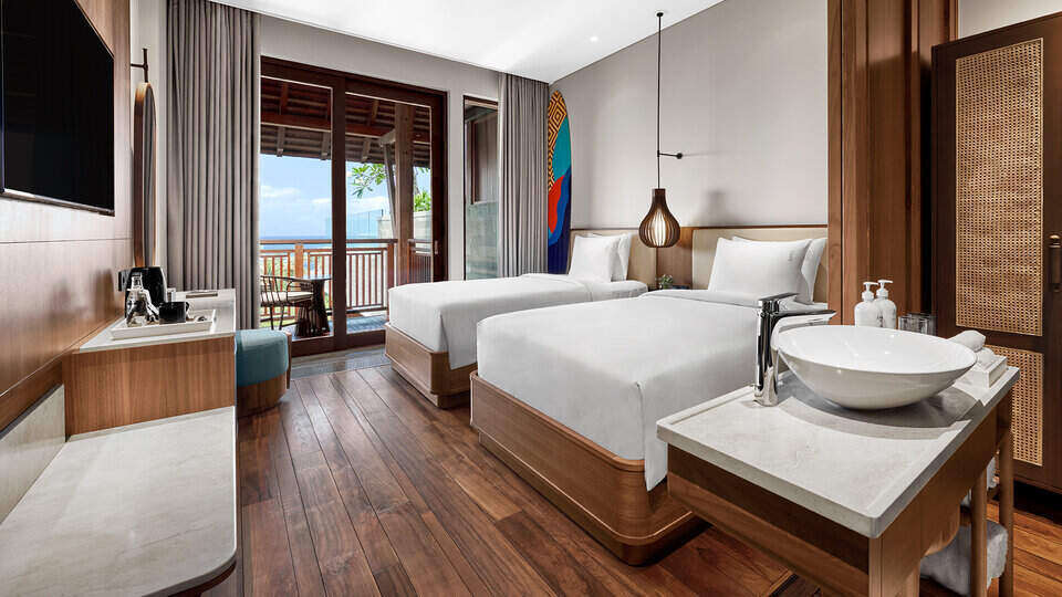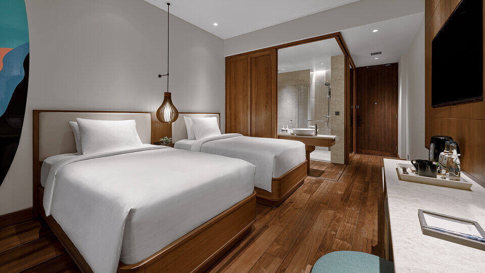 Experience comfort and style in our 32-square-meter standard twin bedroom, thoughtfully designed with two plush twin beds and essential amenities. This cosy space includes a private bathroom with walk-in shower, a convenient desk, ample wardrobe, Smart TV, stocked minibar, furnished balcony, and Wi-Fi, making it an ideal choice for individuals or pairs seeking a harmonious blend of convenience and comfort during their travels.